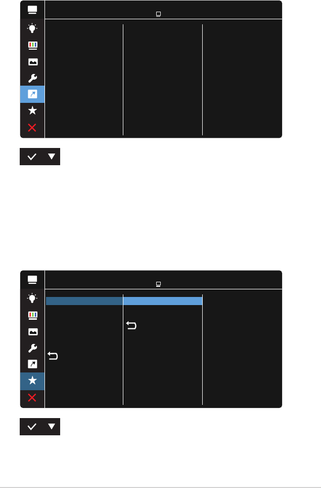 Temp" (Farvetemp.), "QuickFit", "GamePlus" og indstille disse