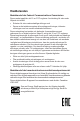 Meddelanden Meddelande från Federal Communications Commission Denna enhet uppfyller del 15 av FCC-reglerna. Användning får ske under följande två villkor: • Enheten får inte orsaka skadliga störingar och • Denna enhet måste acceptera alla mottagna störningar, inklusive störningar som kan orsaka oönskade funktioner. Denna utrustning har testats och befunnits överensstämma med gränserna för en digital enhet av Klass B, enligt del 15 av FCC-reglerna.