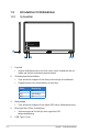2.2 Anslut USB-bildskärmen till systemet A Type-C eller B drivrutinen 1 2 4 Type-A 3 Type-C Om datorn inte stöder Type-C-gränssnitt utan endast USB 3.0-gränssnitt, installera först den officiella drivrutinen från ASUS webbplats. Se till att USB Type-C-kabeln och Type-C till A-adaptern är ansluten mellan USB-bildskärmen och systemet. • 2-2 Kontrollera ASUS webbplats för senaste drivrutin och programvaran DisplayWidget.