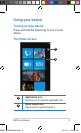 Getting to know your device Headphone connector Power key Volume keys Start key Camera key Back key Search key Using the keys Back key Press to go back to the previous screen or previous application Start key Press to go back to the home screen Search key Press to start a Bing search E5851 E600 Manual.