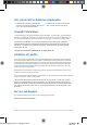 Avis concernant les batteries remplaçables • La batterie de l’ordinateur portable peut • La batterie et ses composants doivent présenter un risque d’incendie ou de brûlure si être recyclés de façon appropriée. celle-ci est retirée ou désassemblée. Copyright Information You acknowledge that all rights of this Manual remain with ASUS. Any and all rights, including without limitation, in the Manual or website, are and shall remain the exclusive property of ASUS and/or its licensors.