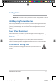 Safety notices for your Notebook PC WARNING! The bottom of the Notebook PC can get warm to hot while in use or while charging the battery pack. When working on your Notebook PC, do not place it on surfaces that can block the vents. CAUTION! • This Notebook PC should only be used in environments with ambient temperatures between 5°C (41°F) and 35°C (95°F). • Refer to the rating label on the bottom of your Notebook PC and ensure that your power adapter complies with this rating.