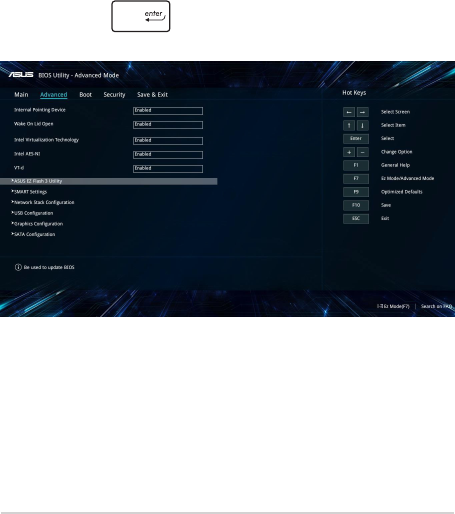 5. From the BIOS menu, select Advanced > ASUS EZ Flash 3 Utility,