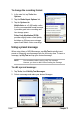 NOTE See the online help on your device for online instructions to back up or restore data. To back up all data on your device: 1. Return to the ASUS programs screen and tap the ASUS Backup icon. 2. Tap the Backup tab on the ASUS Backup screen. 3. Tap All Data button to back up all data on your device. NOTE You need to insert a CF memory card into the CF slot if you wish to save your backup file into a removable storage device. Otherwise, you can save the backup file into the Flash Disk. 4.