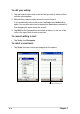 To restore all data: 1. Tap NOTE , then tap Programs. If you saved your backup file into a CF memory card, you need to insert that CF memory card into the CF slot when restoring data. Otherwise, you will receive the message “No storage devices are found!” 2. On the ASUS Programs screen Tap the ASUS Backup icon. When prompted, stop all running programs. See page 2-29 for instructions. 3. Tap the Restore tab on the ASUS Backup screen. 4. Tap All Data. 5.