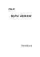 Contents at a glance This handbook contains the information you need to efficiently use ASUS® MyPal A636/632 Pocket PC. • Chapter 1 - Get started! .............................................1-1 This chapter introduces the ASUS MyPal A636/632 Pocket PC, how to set and power it up, and basic screens that will familiarize you with its many features. • Chapter 2 - Learn the basics .....................................2-1 This chapter will teach you the basic functions in MyPal A636/ 632.