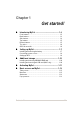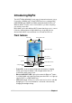 Chapter 1 Get started! ♦ Introducing MyPal ................................................ 1-2 Front features ........................................................................... 1-2 Back features ........................................................................... 1-3 Side features ............................................................................ 1-4 Top features ............................................................................. 1-5 Bottom features ...................