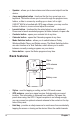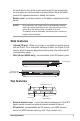 • • • • • • • Speaker - allows you to hear alarms and other sound output from the device. 4-way navigation button - functions like the four arrow keys on a keyboard. This button allows you to move through the program icons, folders, or files in a menu by scrolling up or down, left or right. If ASUS® MyPal is bundled with GPS map software, you may use the buttons to zoom in, zoom out and adjust the volume. Launch button - functions like the enter/return key on a keyboard.