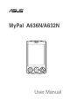 Chapter 1 Getting Started Introducing MyPal The ASUS® MyPal A636N/A632N is truly a good companion wherever you go. Powered by a 416MHz Intel® XScale processor, equipped with 64MB SDRAM and 128MB Flash ROM, and bundled with the Microsoft® Windows Mobile® 5.0 plus a host of useful utilities, you have everything you need in your pocket! MyPal A636N comes with additional Wi-Fi feature that allows you to connect to wireless LAN and Internet.