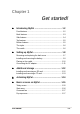 Contents at a glance This user’s manual contains the information you need to efficiently use ASUS® MyPal A730 Pocket PC. • Chapter 1 - Get started!.............................................................. 1-1 This chapter introduces the ASUS MyPal A730 Pocket PC, how to set and power it up, and basic screens that will familiarize you with its many features. • Chapter 2 - Learn the basics .....................................................