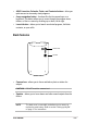 Side features Left side Right side Power button/ Backlight button Camera button Back cover latch • Power/Backlight button - turns the device power on or off if you press the button quickly. Pressing and holding the button for a few seconds turns the backlight on or off. Turning off the backlight saves battery power.