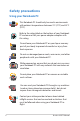 Conventions used in this manual To highlight key information in this manual, some text are presented as follows: IMPORTANT! This message contains vital information that must be followed to complete a task. NOTE: This message contains additional information and tips that can help complete tasks. WARNING! This message contains important information that must be followed to keep you safe while performing tasks and prevent damage to your Notebook PC's data and components.
