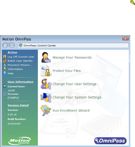 • In the notification area, double-tap the Motion OmniPass icon ( ).