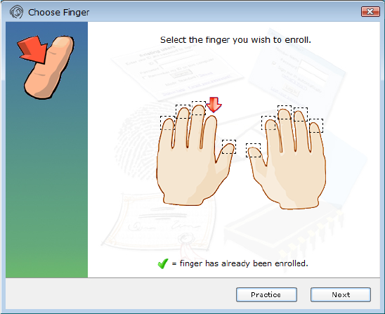 Practice. Practice allows you to do a trial run of the fingerprint capture.
