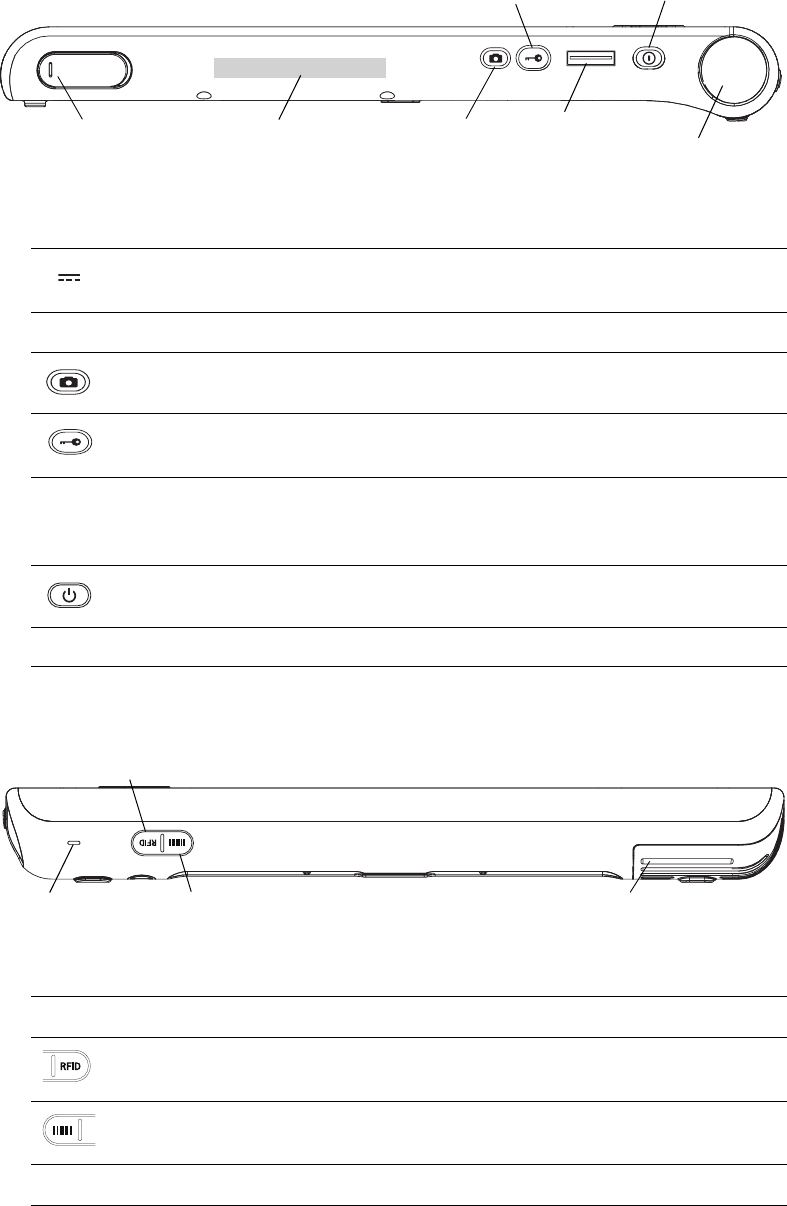 RFID antenna area Scan area for reading RFID tags (page 11).
