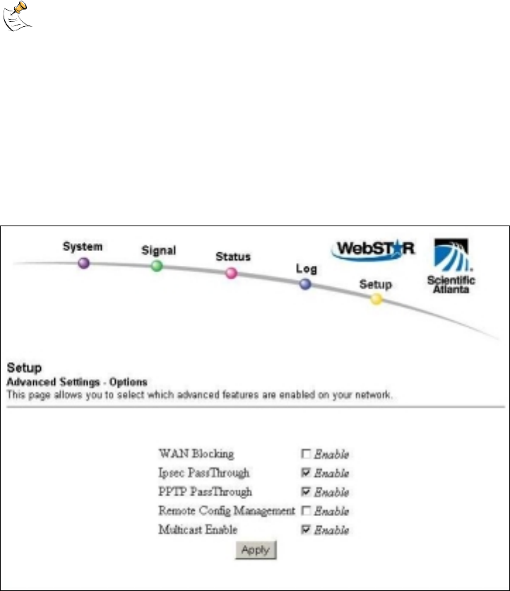 Use the Setup Advanced Settings – Options page to enable or disable advanced