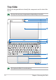 Top Side Refer to the diagram below to identify the components on this side of the Eee PC. The top side may vary in appearance depending on models. 1 2 3 4 5 6 7 8 9 10 The keyboard differs for each territory.