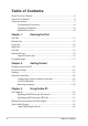 About This User’s Manual You are reading the Eee PC User’s Manual. This User’s Manual provides information regarding the various components in the Eee PC and how to use them. The following are major sections of this User’s Manual: 1. Knowing the Parts Provides information on the Eee PC’s components. 2. Getting Started Provides information on getting started with the Eee PC. 3. Using the Eee PC Provides information on using the Eee PC’s utilities. 4.