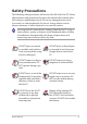 Safety Precautions The following safety precautions will increase the life of the Eee PC. Follow all precautions and instructions. Except as described in this manual, refer all servicing to qualified personnel. Do not use damaged power cords, accessories, or other peripherals. Do not use strong solvents such as thinners, benzene, or other chemicals on or near the surface. Disconnect the AC power before cleaning.