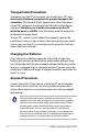 Table of Contents Chapter 1: Introducing the Eee PC About This User’s Manual............................................................................. 1-2 Notes for This Manual.................................................................................... 1-3 Safety Precautions.......................................................................................... 1-4 Transportation Precautions....................................................................... 1-6 Charging Your Batteries....
