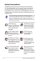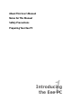 About This User’s Manual Notes for This Manual Safety Precautions Preparing Your Eee PC 1 Introducing the Eee PC