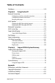 Table of Contents Table of Contents.................................................................................................ii Chapter 1: Introducing the Eee PC About This User’s Manual............................................................................. 1-2 Notes for This Manual.................................................................................... 1-3 Safety Precautions..........................................................................................