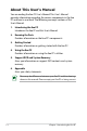 About This User’s Manual Notes for This Manual Safety Precautions Preparing Your Eee PC 1 Introducing the Eee PC