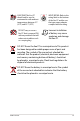 Bottom Side Refer to the illustration below to identify the components on this side of the Eee PC. The bottom side may vary in appearance depending on model. 1 2 2 3 1 4 5 6 6 The bottom of the Eee PC can get very hot. Be careful when handling the Eee PC while it is in operation or recently been in operation. High temperatures are normal during charging or operation. DO NOT use on soft surfaces such as beds or sofas ,which may block the vents.