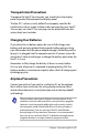 Transportation Precautions To prepare the Eee PC for transport, you should close the display panel to protect the keyboard and display panel. The Eee PC’s surface is easily dulled if not properly cared for. Be careful not to rub or scrape surfaces when transporting your Eee PC. You can put your Eee PC in a carrying case for protection from dirt, water, shock, and scratches.