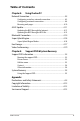 Table of Contents Chapter 1: Introducing the Eee PC About This User’s Manual............................................................................. 1-2 Notes for This Manual.................................................................................... 1-3 Safety Precautions.......................................................................................... 1-4 Transportation Precautions....................................................................... 1-6 Charging Your Batteries....