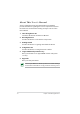About This User’s Manual You are reading the Eee PC User’s Manual. This User’s Manual provides information regarding the various components in the Eee PC and how to use them. The following are major sections of this User’s Manual: 1. Introducing the Eee PC Introduces the Eee PC and this User’s Manual. 2. Knowing the Parts Provides information on the Eee PC’s components. 3. Getting Started Provides information on getting started with the Eee PC. 4.