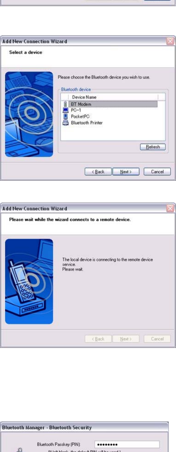 for the modem station under [Bluetooth Passkey (PIN code)], and then click on the