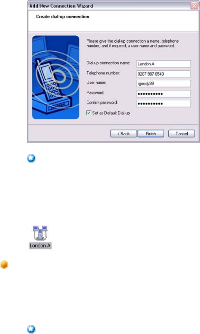 7. Enter the connection name (optional), telephone number (of your provider's access
