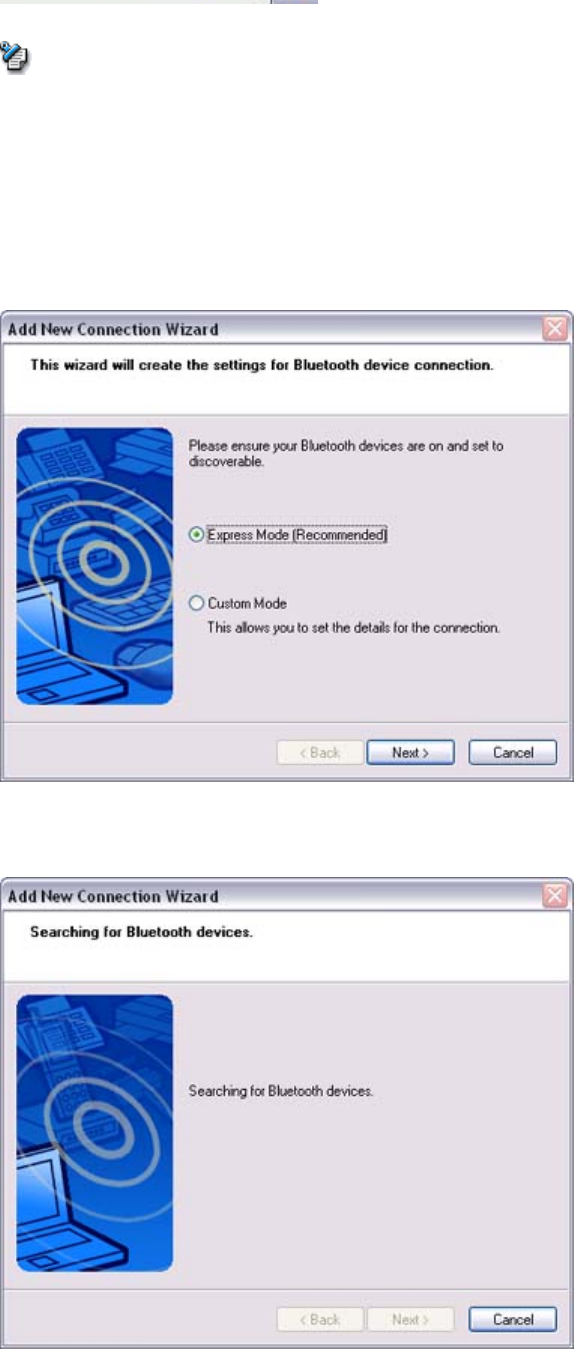 The [Add New Connection Wizard (Searching for Bluetooth devices)] window will