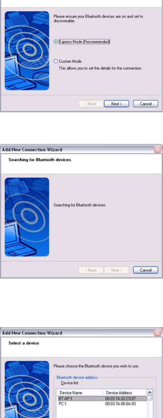 The [Add New Connection Wizard (Searching for Bluetooth devices)] window