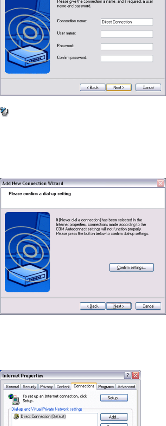 The [Add New Connection Wizard (Confirm Dial-up Settings)] window will appear.