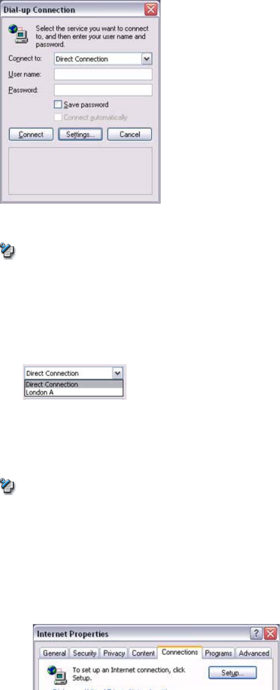 2 Click on the [Connections] tab, and then click on the [Settings...] button