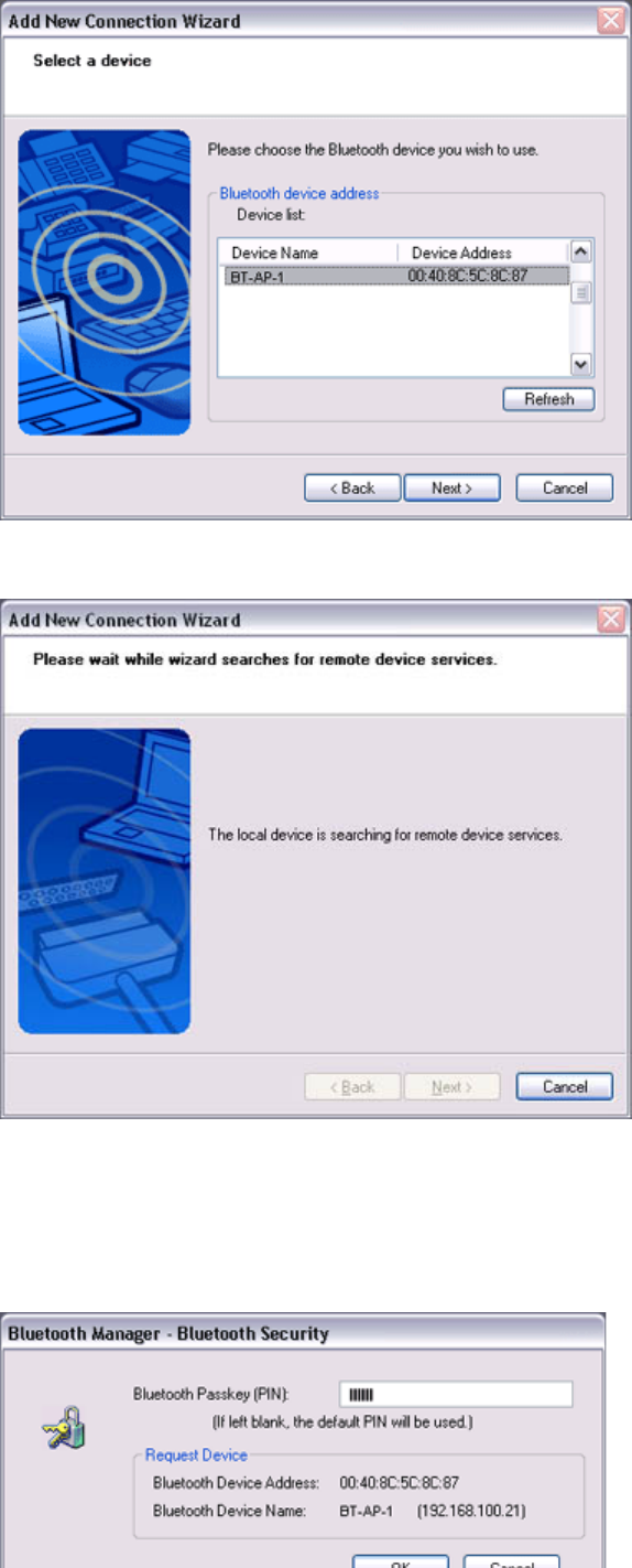 You will be asked for the Bluetooth passkey in the window that appears.