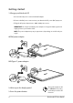 Getting started 1. Charge your Notebook PC A. Connect the AC power cord to the AC/DC adapter. B. Connect the DC power connector into your Notebook PC’s power (DC) input port. C. Plug the AC power adapter into a 100V~240V power source. IMPORTANT! Use only the bundled power adapter to charge the battery pack and supply power to your Notebook PC. NOTE: The power adapter may vary in appearance, depending on models and your region. AC/DC power adapter USB Type-C® power adapter 2.