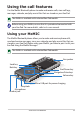 5. Once paired, you will see Connected within the MeMic Manager. Tap MeMic quick manual for more instructions on using your MeMic. Making calls • Ensure that your MeMic is paired with your Eee Pad. For details, refer to the previous section Using your MeMic. • When making or receiving calls, you can also connect the bundled headset to your MeMic’s headphone port. Making calls from the Dialer To make a call from the Dialer: 1. Turn on your MeMic. 2. From the Home screen, tap . 3.