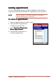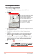 Sending appointments You can send appointments and other schedules to other devices using the infrared (IR) and Bluetooth™ capabilities of your Pocket PC. NOTE Refer to “Chapter 10: Getting connected” for details on infrared and Bluetooth™ connections. To send an appointment: 1. Select an appointment you wish to send. 2. Tap and hold the appointment to display a pop-up menu. 3. Select Send via Bluetooth or Beam Appointment Appointment. 4. Follow screen instructions to send the appointment.