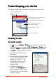 Using the summary screen Tapping a task on the task list displays a summary screen. To change the task details, tap E d i tt. Task details Tap to show or hide the task details Notes/additional information on the task Tap to change the task details Sending tasks You can send tasks to other devices using the infrared (IR) and Bluetooth™ capabilities of your Pocket PC. NOTE Refer to “Chapter 10: Getting connected” for details on infrared and Bluetooth™ connections. To send a task: 1.