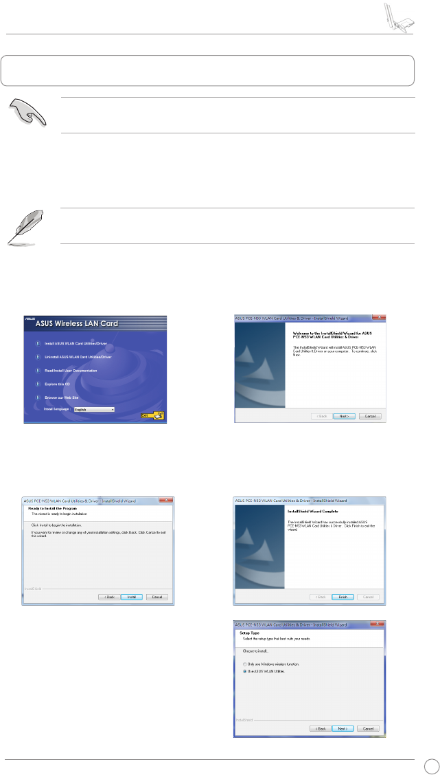 To install the driver and utilities for your ASUS PCE-N53 WLAN Card: