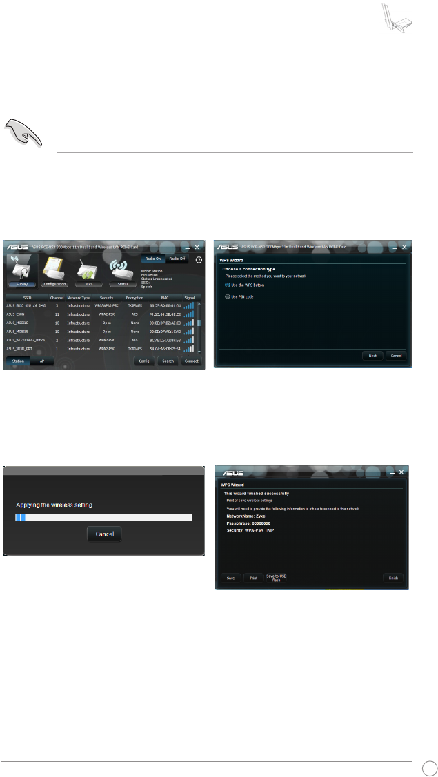 The ASUS PCE-N53 WLAN Card supports the WPS function that helps you set up