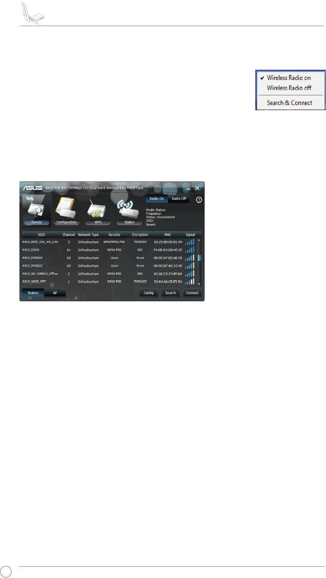 Left-click the ASUS Wireless Dual-band Card Setting Utility system tray icon to