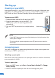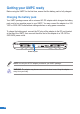 Starting up Powering on your UMPC Like a regular desktop PC, your UMPC automatically runs a series of diagnostic tests called Power-On Self Test (POST) upon turning it on. After POST is completed, your UMPC boots up, then its Windows® operating system starts automatically. To power on your UMPC: 1. Locate the power switch at the left side of your UMPC. 2. Press the switch down to turn on the UMPC. The UMPC boots up, then the operating system starts automatically. 3.