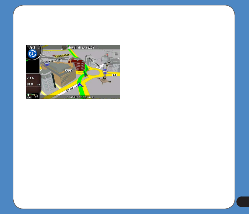 A pictogram indicating the next manoeuvre is displayed on the left side along with its