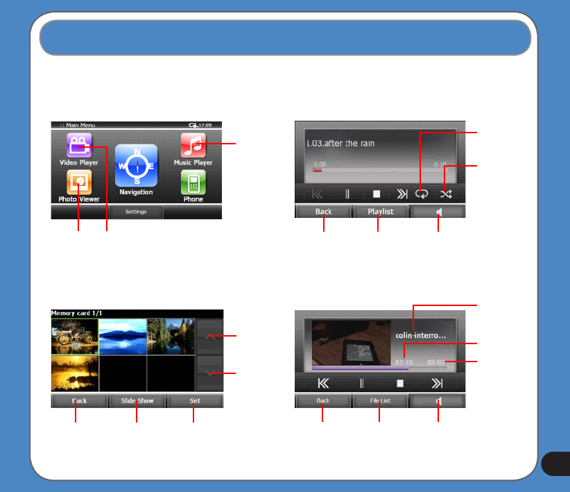 videos (wmv. les). Tap the respective icons from the main menu to launch the applications.