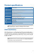 Product specifications Dimension 152*67*167 mm Weight 256g Button Power on/off button; AP router reset button Port Power, Micro USB, HDMI, Ethernet Miracast 1920 x 1088 Pixels Memory DRAM 2GB; NAND Flash 16GB Wireless Protocol WiFi 802.11b/g/n; ZigBee PRO (Future Support: Bluetooth, Z-wave, Thread) Zigbee Module CEL’s MeshConnect (TM) EM357 Module Power AC 100V-240V P2P Remote Control Cloud ASUS Cloud Service (No webstorage) NOTE: Specifications subject to change without notice.