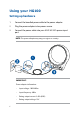 Using your HG100 Setting up hardware 1. Connect the bundled power cable to the power adapter. 2. Plug the power adapter into a power source. 3. Connect the power cable into your ASUS HG100’s power input port. NOTE: The power adapter may vary per region or country. IMPORTANT! Power adapter information: 6 • Input voltage: 100-240Vac • Input frequency: 60Hz • Rating output current: 3.